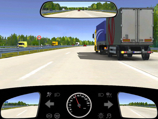 Sie nähern sich dem Lastzug, der gerade mit etwa 60 km/h auf ihren Fahrstreifen wechselt. Welche Möglichkeiten haben Sie?