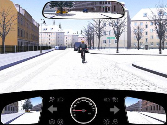 Bremsen, Lenkrad bzw. Lenker gut festhalten und versuchen, die Fahrtrichtung beizubehalten