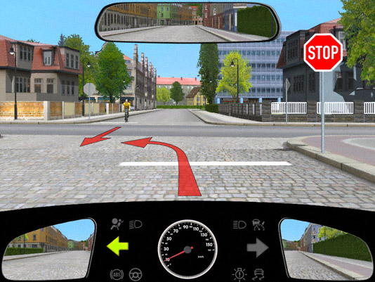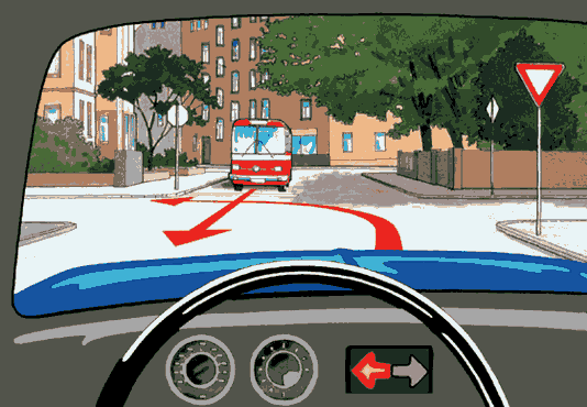 den Bus durchfahren lassen, auch wenn der Bus ein STOP-Schild zu beachten hat).