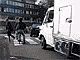 Die freie Gasse hinter den Einsatzfahrzeugen ausnutzen